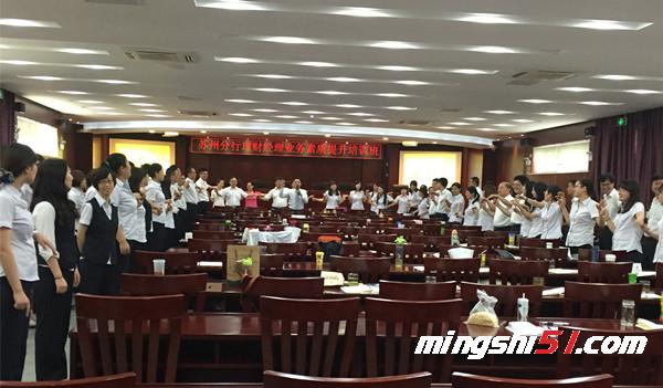 2015年8月21日周五,美国NGH催眠治疗师、高级企业EAP执行师郭敬峰老师受邀给苏州某银行分享《情绪调适与自我激励》心理学课程,一百多位理财经理学习了如何认识情绪、自我情绪管理、职业情商提升、自我激励技巧等,整个培训通过互动游戏、案例分析、心理测评和理论讲解结合,大家学习气氛非常热烈,感悟收获很多。