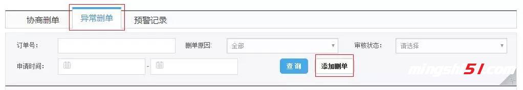 申请审核:商家提交的异常订单删单申请,审核专员将于24小时内审核完毕;