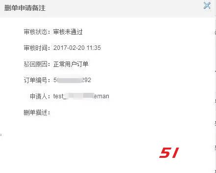 2.如提交的异常删单申请审核未通过,可点击“查看”按钮,查询具体驳回原因;