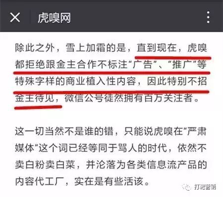 今年愚人节上,虎嗅也对自己大大动了把刀子。推文里虎嗅以可怜巴巴的语气说道:“曾听说某公司在制订发布会媒体邀请名单时,虎嗅被专门剔除出去,理由是‘该媒体可控性差’……而比得罪巨头更严重的是,虎嗅还极其欠缺讨好受众的能力……除此之外,雪上加霜的是,直到现在,虎嗅都拒绝跟金主合作不标注‘广告’、‘推广’等特殊字样的商业植入性内容,因此特别不招金主待见,微信公号徒然拥有百万关注者。”